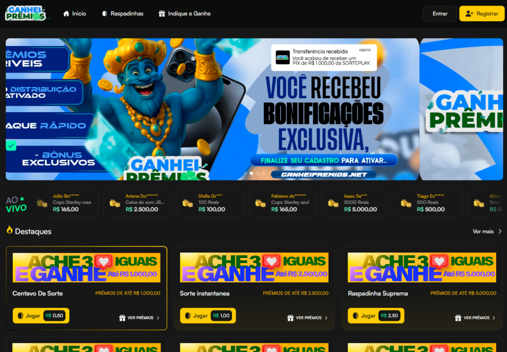 Deu Prêmios, somos:Bingo OnlineRaspadinha OnlineE Sala de Sinais