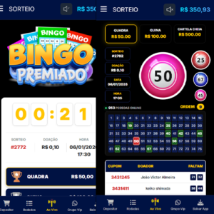 O Bingo que você já conhece, mas com prêmios que você nunca viu! Salas 24h, cartelas acessíveis e a emoção do grito de 'BINGO!' direto no seu Pix.